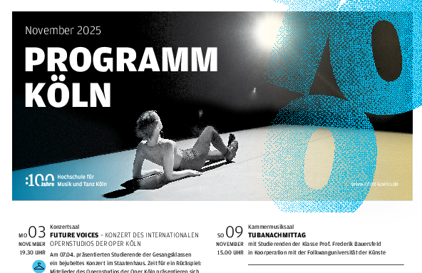 Every season, the university takes over the last opera premiere of the season with four performances at the theater. At the Rhenish Opera Academy, singers can draw from a wide range of courses: from scenic lessons to aria presentation, stage fencing and bodywork to elocution lessons.