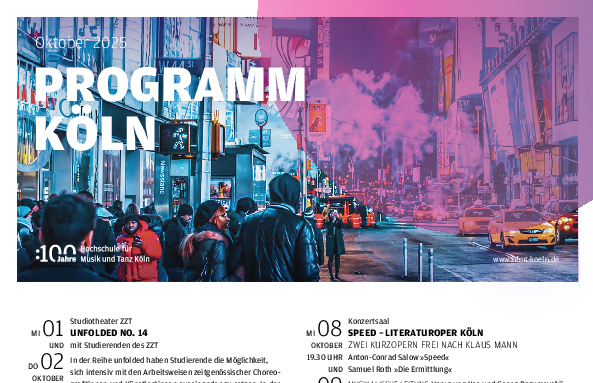 Heute werden zwar keine Lieder mehr über die Straße geschrieben. Wohl aber werden Lieder in ihr geschrieben, sie werden studiert sowie mit Instrument und Körper interpretiert. Und auch ansonsten liegt die Hochschule für Musik und Tanz Köln genau da, wo sie hingehört: mitten in einem Dreieck aus Weltkulturerbe Kölner Dom, dem Rhein und dem lebendigen Viertel Eigelstein. Natur, Kultur und Leben: Was könnten größere Inspirationsquellen sein?